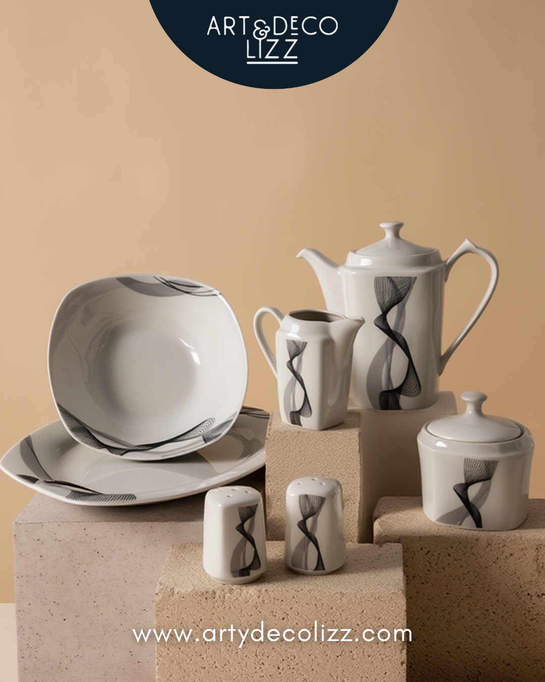 Juego de vajilla de diseño elegante y contemporáneo, con líneas artísticas que aportan distinción a cualquier mesa.